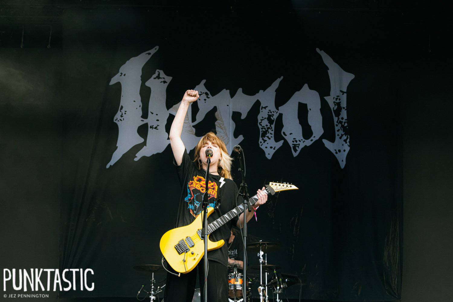 Heriot begin their set on the Ronnie James Dio stage with the force of a wrecking ball. They open with material from their 2024 debut album and immediately set off a circle pit that barely lets up for the rest of the set. The sight of a man in full knight armour guiding the chaos in the centre adds a surreal edge, as if the pit itself has a steward. Debbie Gough wields her yellow guitar with venom, her screams slicing through the dense, metallic wall of sound, while bassist Erhan Alman matches her intensity with his own guttural roars.
