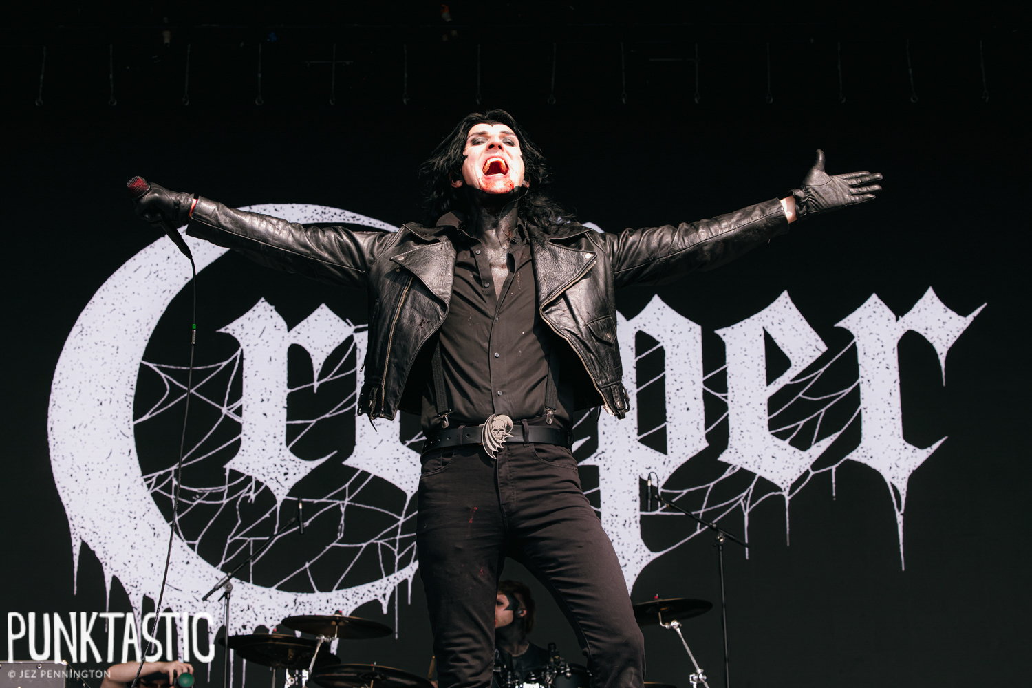 With all the drama you would expect, Creeper arrive on the Dio Stage looking like rock ‘n’ roll vampires, dressed in black leather, eyeliner heavy, and blood-red makeup smeared across their faces. They launch straight into ‘Cry to Heaven’, the stage erupting in pyro and flames, the crowd roaring back every word. Their set feels less like a performance and more like theatre, with each song delivered as part of a wider narrative of gothic grandeur.