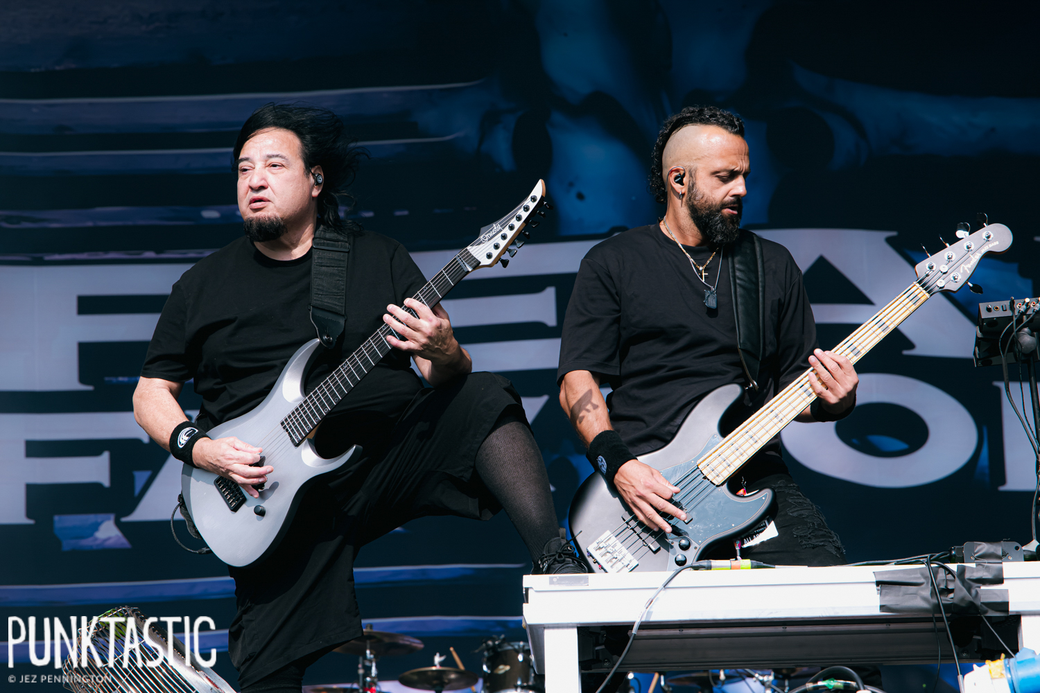 Next, Fear Factory deliver mechanical precision and sheer weight. They open with ‘Shock’, the industrial riffs reverberating across the field, instantly locking the crowd into a march. Their signature blend of machine-like groove and soaring choruses feels as potent as ever, even decades on. Mid-set, ‘Edgecrusher’ and ‘Demanufacture’ send waves of fists into the air, their impact amplified by the thunderous rhythm section. Closing with ‘Replica’, the field becomes one seething mass, the refrain screamed back at full volume by thousands of voices. Fear Factory prove themselves masters of controlled chaos, a band whose influence is written across countless acts on the lineup, yet still deliver it with unmatched authority.