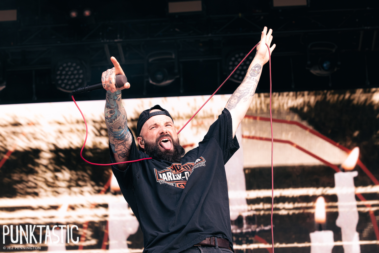 August Burns Red arrive with a bang. They open with ‘Fault Line’, the pit goes nuclear, and Jake Luhrs is already commanding the stage like he owns the place. The setlist is a greatest-hits sprint, with ‘Composure’ sparking chaos and ‘Invisible Enemy’ getting one of the biggest singalongs of the afternoon. Every breakdown lands harder than the last, and the band play with the kind of precision that makes other musicians quietly hate them. They close with ‘White Washed’, the crowd screaming the words like their lives depend on it, and it feels like August Burns Red have just levelled the field.