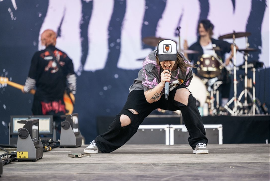 It’s never easy opening the main stage but if anyone can stay cool under the heat, both metaphorically and literally, it’s Sydney’s Stand Atlantic. It’s an easy going affair but by no means a static one, with ‘Wavelength’ getting the crowd up and moving. Vocalist Bonnie Fraser sticks to the front of the stage, feeding off the early afternoon crowd’s emerging energy as she leads their most loyal fans in a savage rendition of ‘Deathwish’. Stand Atlantic are one of those acts you see live that feel like they belong on the Vans Warped tour on a sunny California day, and while they need to settle for a swampy day in Donington, their pure pop punk style makes for a great first show of the day. As WARGASM’s Milkie Way says during the Kerrang interlude adverts constantly on shuffle every 15 minutes says “You’re all looking sufficiently sweaty right about now.”